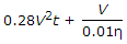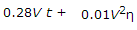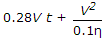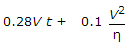If V is the velocity in km.p.h., t the brake reaction time in seconds and η the efficiency of the brakes, the stopping distance S of the vehicle, is