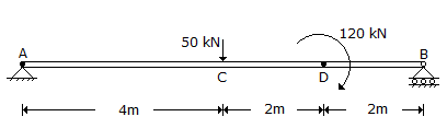 The beam shown in the figure given above is subjected to concentrated load and clockwise couple. What is the vertical reaction at A ?