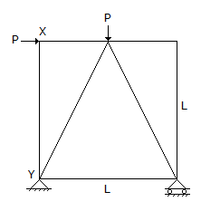 A truss is shown in the given figure. The cross-sectional area of each member is 'A' and the modulus of elasticity of the material is E. The strain energy in the member XY is given by