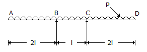 ABCD is a beam of length 5l which is supported at B and C (having supported length BC = 'l') and having two equal overhangs AB and CD of length 2l each. It carries a u.d.l. of intensity p per unit length throughout the beam as shown in the given figure.