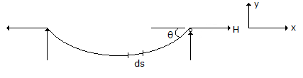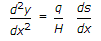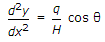 Which one of the following is the correct differential equation of the shape of the cable (similar to electrical cables) of unit weight 'q' with small slopes, as shown in the given figure ?