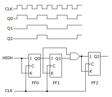 A four-channel scope is used to check the counter in the figure given below. Are the displayed waveforms correct?
