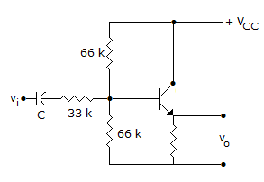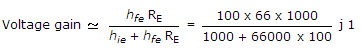 In the amplifier circuit of figure hfe = 100 and hie = 1000 Ω. The voltage gain of amplifier is about