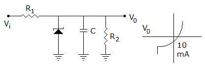 Figure shows a zener circuit and characteristic of the zener used. If R2 is the lowest load resistance, then for proper voltage regulation R1 must be