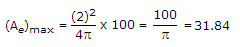 The maximum effective aperture of an antenna which is operating at wavelength of 2 m and has a directivity of 100 is __________ .
