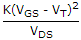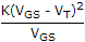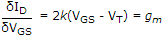 The drain current of a MOSFET in saturation is given by lp = K(VGS - VT)2 where K is a constant. The magnitude of the transconductance gm is