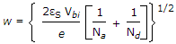 Nd = 2 x 1016 cm-3 and Na = 1016 cm-3. The space charge width is: