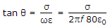 For a medium σ = 2.1 x 10-4 mho/m and ε = 80 e0 at a frequency of 5 GHz its loss tangent is