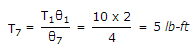 If θ1 = 2 rad. clockwise and the torque of gear 1 is 10 lb-ft, what is the displacement and torque of gear 7.
