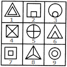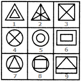 1, 6, 9 are figures which are half shaded by slanting lines.