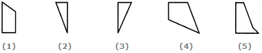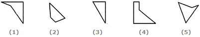Select the alternative which represents three out of the five alternative figures which when fitted into each other would form a complete square.