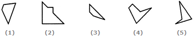 In each of the following questions, a set of five alternative figures 1, 2, 3, 4 and 5 followed by a set of four alternatives (A), (B), (C) and (D) is provided. It is required to select the alternative which represents three out of the five alternative figures which when fitted into each other would form a complete square.